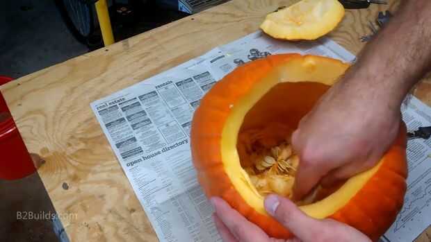 Una vez tuve mi mecanismo, tomé nota de lo ancho era y buscó una calabaza bastante grande, con un ancho suficiente "lado plano". Más calabazas tienen un lado plano, donde estaban sentados en el suelo. Esto suele ser también el lado más sucio. Encontré uno que estaba en bastante buenas condiciones y solo necesitaba un poco de lavado/cepillado para quitar alguna suciedad. Esto me permitiría ajustar el mecanismo interior sin tener que curva/curva de lo demasiado.