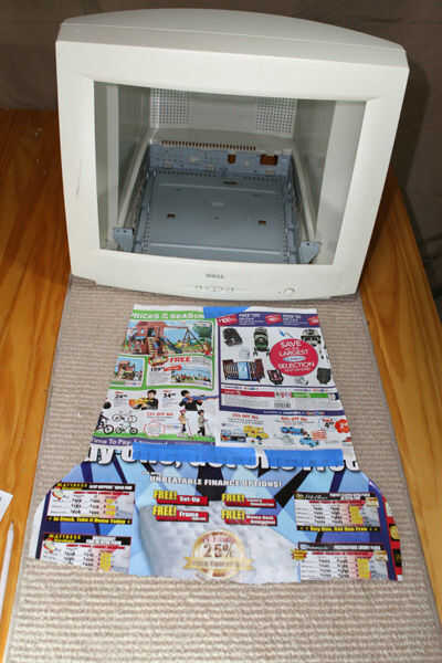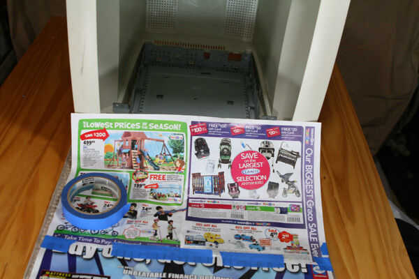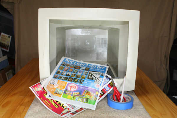 Cinta adhesiva los trozos de papel para obtener el aproximado anchura y profundidad del monitor.