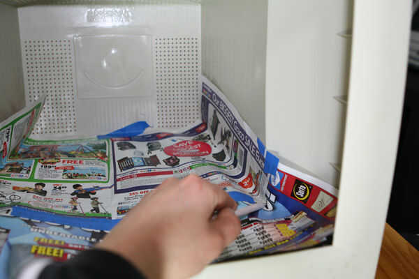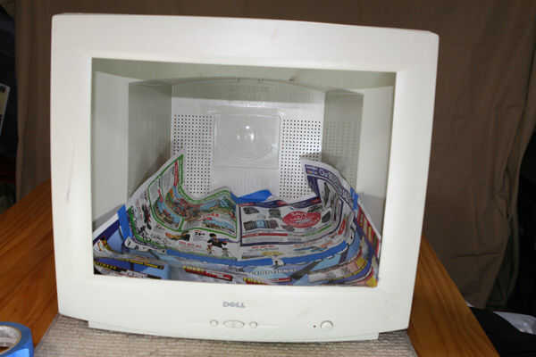 Siguiendo las líneas que trazaste, cortar el patrón del interior del monitor. Usted puede colocarlo nuevamente para ver si cabe o si necesita hacer ajustes.