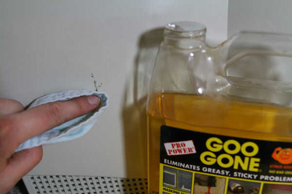 Limpie primero con el Goo Gone y conseguir todas las cintas adhesivas y residuos de la etiqueta engomada apagado el monitor.