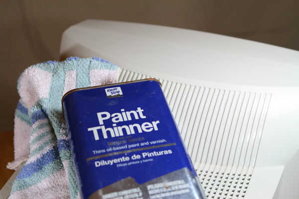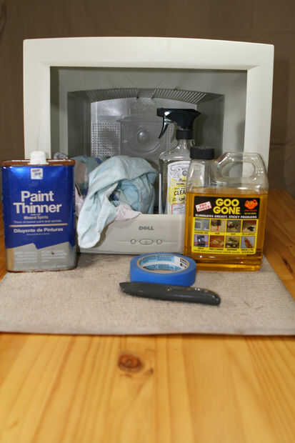 Jabón y agua o limpiador regular. Goo Gone para el material pegajoso, que es de alguna manera en cada monitor de segunda mano que he encontrado. Pintura de preparación para algunas de las pinturas plásticas. Harapos.