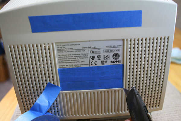 Algunas partes del monitor no quiere pintar. Generalmente me gusta mantener al monitor información intacta y a veces otras pequeñas áreas. Así que utilice la cinta adhesiva de pintores encubrir. Y si va en spray solo pintar el exterior del monitor, tape los agujeros de ventilación en la espalda y la parte superior desde el interior, así que la pintura en aerosol no en.