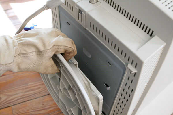En muchos monitores, hay poco truco pestañas plásticas que usted tiene que encontrar para pop abierto la carcasa exterior. Son a veces en la espalda cerca de la toma de cable... Otras veces, a menudo en la costura entre la parte frontal del monitor y la parte posterior.