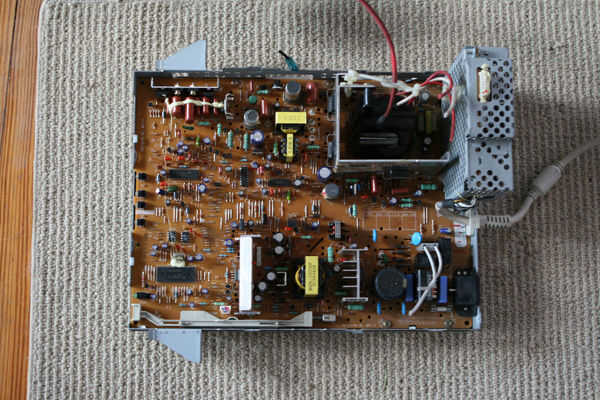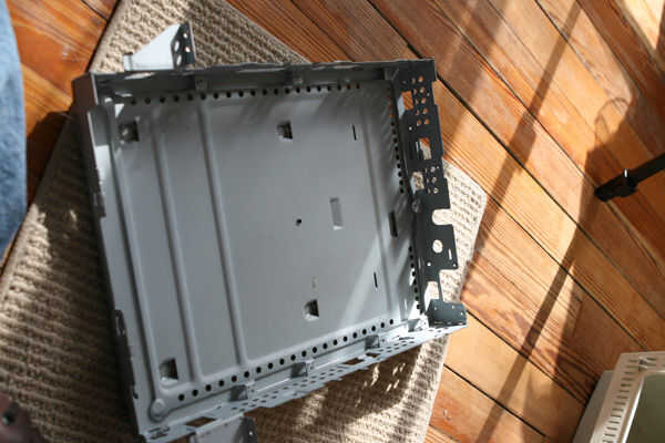 La parte inferior todavía está conectada a la placa, así que tendremos que encontrar todos los tornillos pequeños que mantienen en ponen y quitar. Están en todas partes! y a menudo de oculta bajo otras cosas, tan cerca... prueba de vaivén y desenroscar lejos.