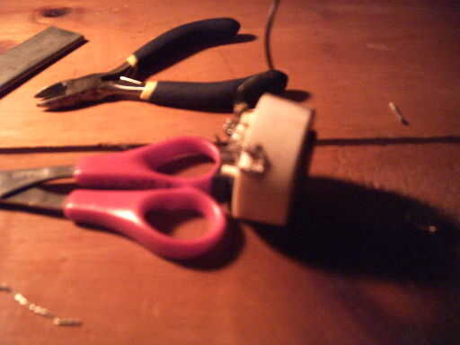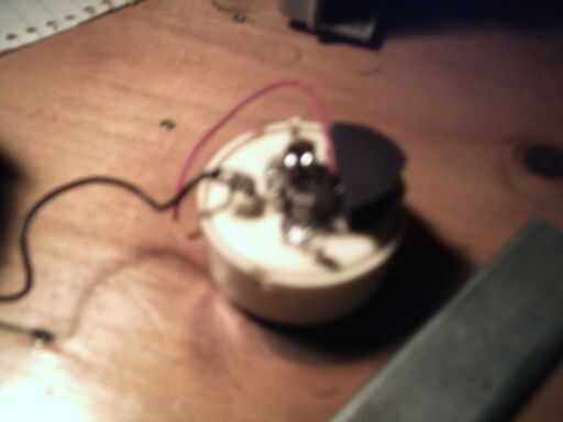 Ahora ponga las pilas. Hice una pequeña habitación en el bolsillo de la batería de mi cámara, así que podía usar un pequeño alambre como un "interruptor".
