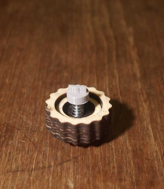 Primero, coloque la tuerca en el corte hexagonal en el interior de la perilla de bobina, ayuda un poco poco de pegamento.