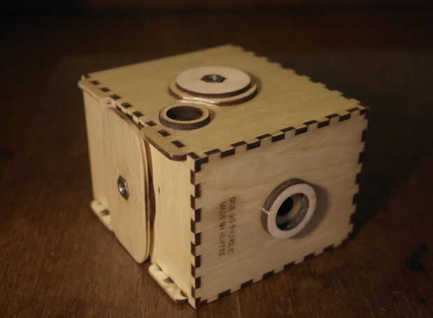 Lagunas en el caso de la cámara como grande o más grande que el agujero de alfiler significa no funcionará correctamente, por lo que la precisión es muy importante aquí. Si ya lo tienes Utilice abrazaderas para sujetar la caja juntos mientras el pegamento seca. Esto es especialmente útil si alguna de sus piezas son ligeramente arqueado.