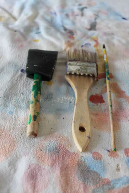 Tip: sólo tenía un cepillo grande y sólo tuvo que aclarar mi cepillo cada vez cambia colores de la pintura , pero si tienes un pincel para cada color y va a utilizar el cepillo de nuevo para una segunda capa, envuelva el cepillo en la envoltura de plástico y el cepillo permanece maleable hasta que utilizar otra vez.