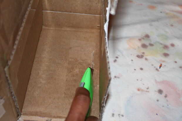 Volver a cortar las ranuras para el cinturón. Estará cortando a través de la pintura y cinta de corte así que desde el interior de la caja para conservar su trabajo de pintura maravillosa. :-)