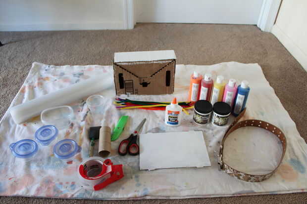 - Un 10 en x 6 en cartón para cubrir los agujeros en la parte posterior si utiliza una caja como la del diagrama de