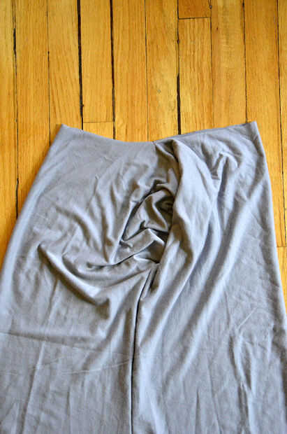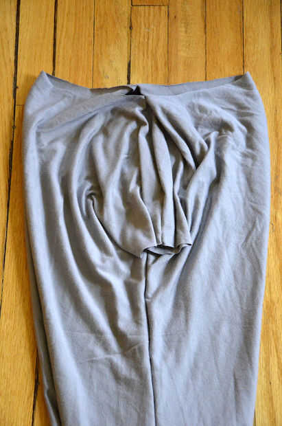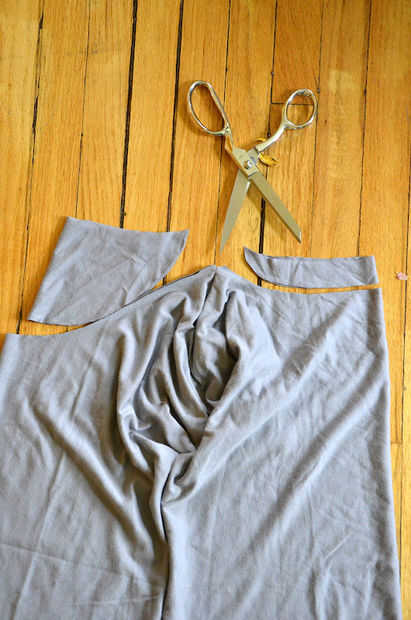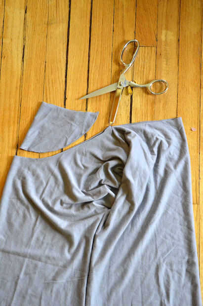 Empezar por ir 2-3" lejos de la costura del hombro y corte 2-3 pulgadas hacia abajo y el excedente. Si quieres más cucharada siempre puede volver y cortar más apagado.