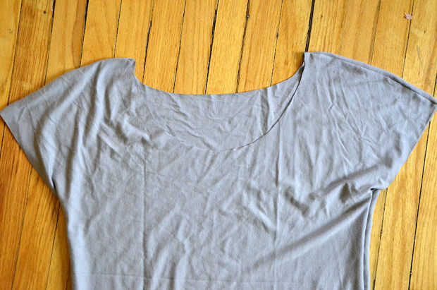 Por ejemplo: si se corta cerca de la costura del hombro, usted puede conseguir un "sobre el hombro la mirada", pero si corte algunas pulgadas lejos de la costura del hombro su escote no será tan amplia y será más como una camiseta.