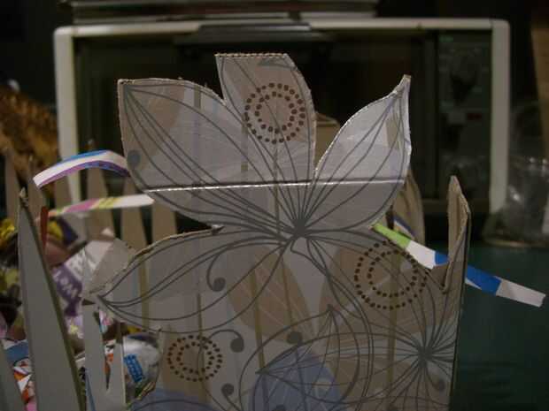 Si un cuadro tiene un patrón floral, recortar el cuadro de distancia alrededor de los bordes de la flor, para resaltar la forma. Si el patrón se ajusta en la parte superior de la caja, incluir también las partes del patrón y desplegar la cartulina por lo que la flor es plana.