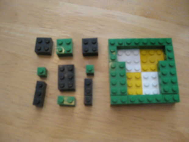A continuación, poner un 2 * 1 horrizontaly por encima del fondo 4 * 1 y 2 * 2 por debajo de la superior.