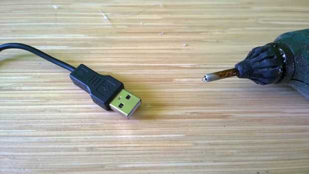 Paso 3: Taladre un agujero para el cable USB y el enchufe a la base del pegamento