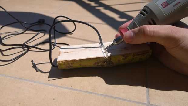 Siguiente y la última cosa que tienes que hacer es hacer una ranura para el cable. Usé mi dremel para hacerlo. La muesca debe estar un poco más profunda que el diámetro del alambre. Después de hacer una muesca sipmply caliente pegar el cable en su lugar.