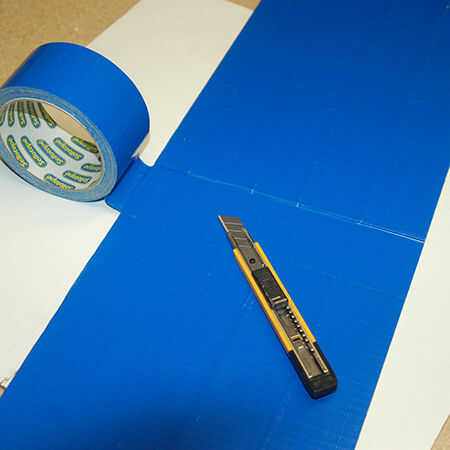 3. Coloque las tiras de cinta adhesiva de la parte superior de un panel en la parte inferior de la otra, asegurando que se mantiene la brecha de 5mm.