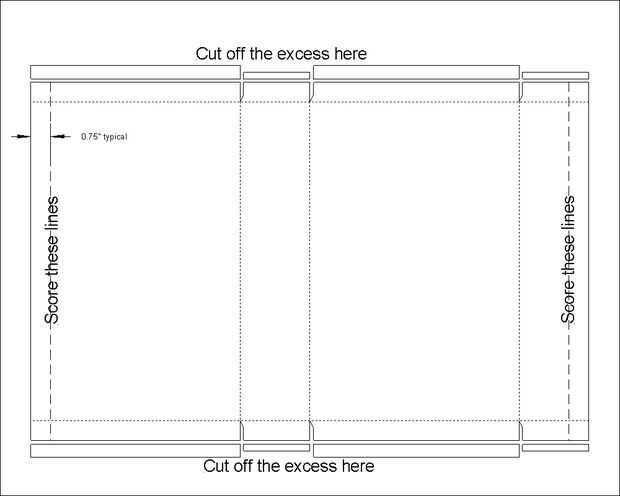 Marque una línea en las solapas abiertas 3/4 de pulgada desde el doblez del borde inferior. Cortar todo el material sobrante por debajo de esta línea.