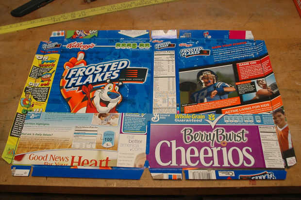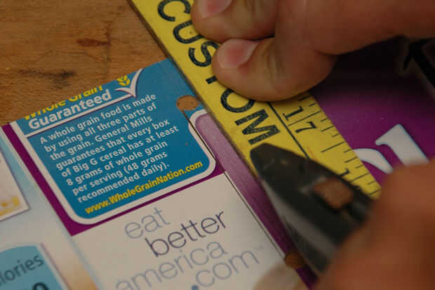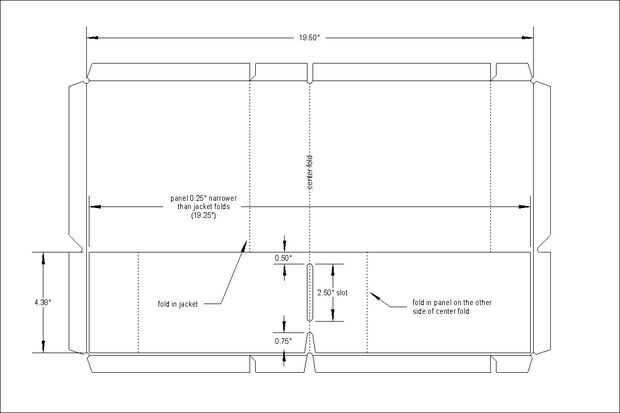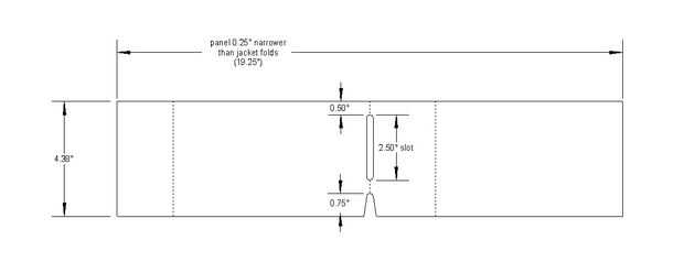 Cortar un panel como se muestra. Debe ser 4 y 3/8 pulgadas de alto y 1/4 de pulgada más estrecha que el ancho entre los pliegues anotados derecho e izquierdos de la chaqueta. Por ello, pegado y plegado mucho más fácil. El pliegue de centro debe estar alineado con el pliegue de centro de la chaqueta. Otros pliegues no deben estar alineados con alguno de los pliegues de la chaqueta.