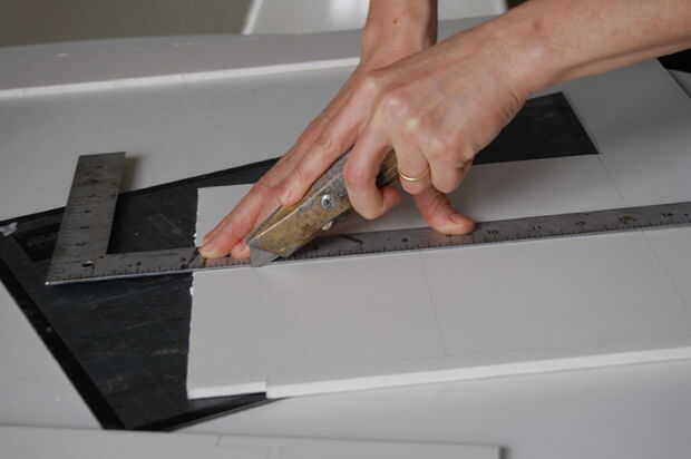 Utilice una regla a menos que tenga una mano muy firme. Cortar las líneas rectas largas con un cúter y los más finos cortes con una cuchilla de bisturí (comúnmente conocida por el nombre Xacto).