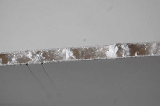 Lo más importante (siempre) es utilizar un cuchillo afilado. Cuadro número 2 muestra qué sucede cuando usted corta la espuma con un cuchillo embotado. Y eso no es lo peor de él. Cuando se está presionando a la corte con un cuchillo embotado es mucho más probable que Deslice y cortar el dedo, así que acaba de obtener una nueva hoja, vale.