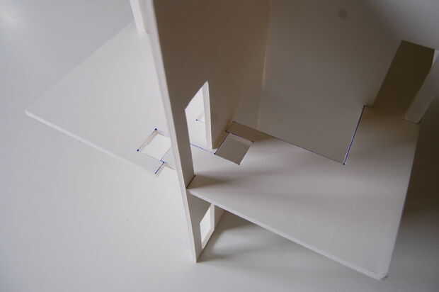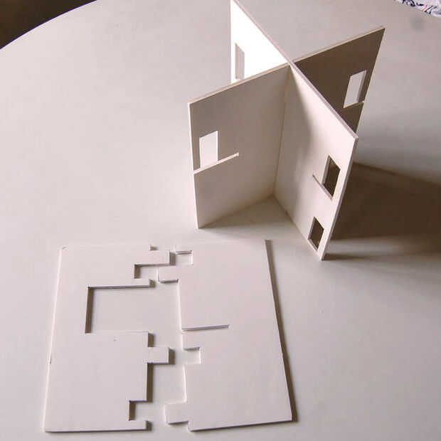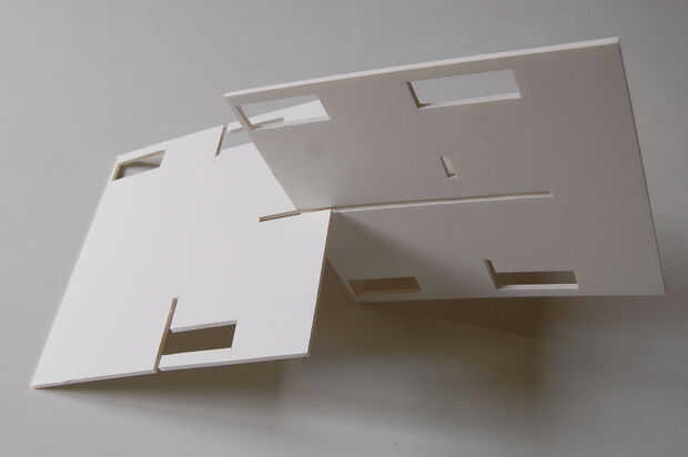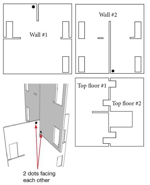 Deslice las dos paredes juntas en un ángulo de 90° exactamente como se muestra en el primer dibujo, los dos puntos uno frente al otro.