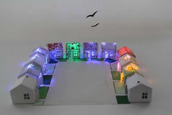 En este tutorial te mostramos cómo hacer una casa de papel que se prende como se pone oscuro. Para ello utilizaremos algunos pintura pelada, una batería, algunos LEDs estándar, un LDR (resistor dependiente de luz), un transistor y una resistencia de 100K.