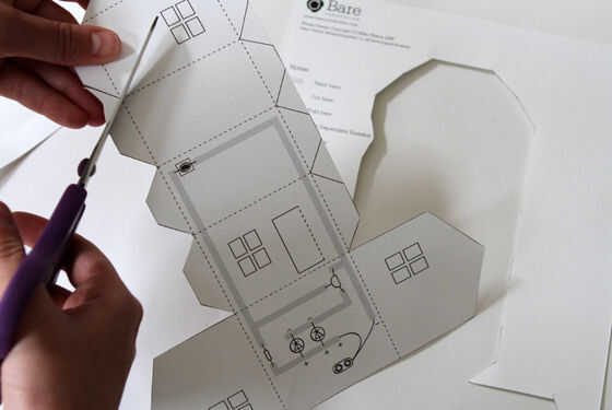 Descargar el archivo PDF para imprimir la plantilla. Recorte la plantilla a lo largo del contorno negro sólido.
