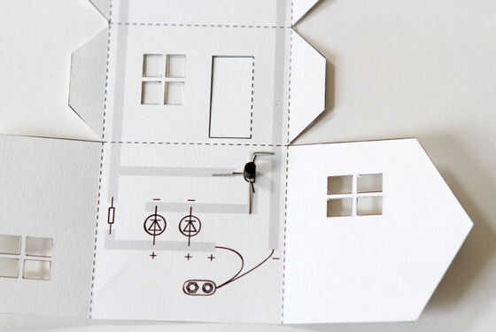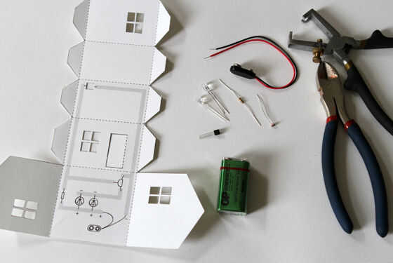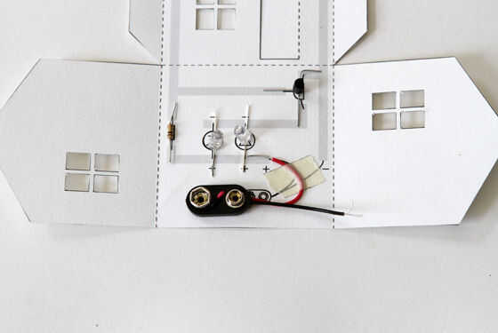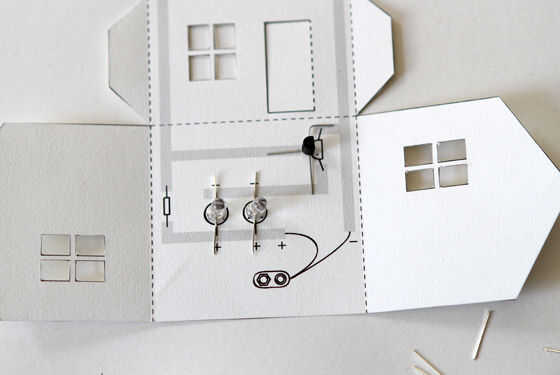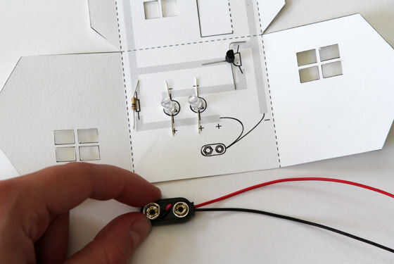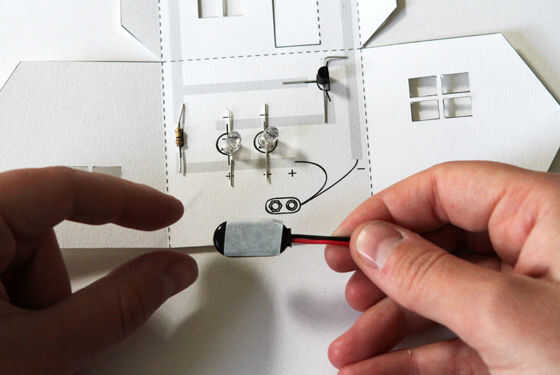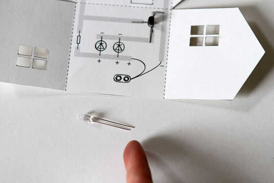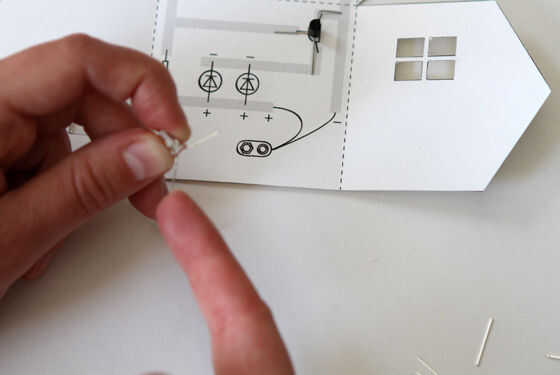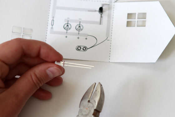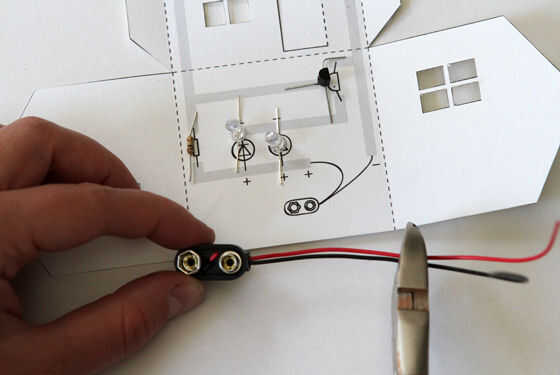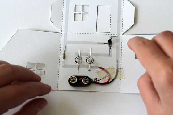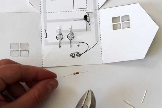 Recortar las patas de la LDR con sus tijeras. Doble las piernas y coloque en el circuito, mirando hacia el exterior.