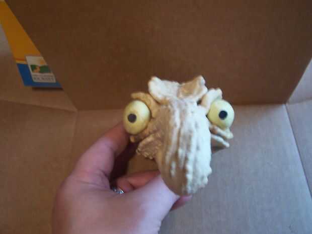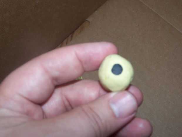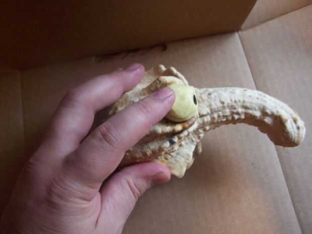 Smoosh (sí, es un término técnico) el ojo entre dos de las bridas a lo largo de lado de la calabaza.