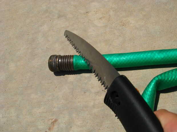 Hacer la manguera en un círculo (Figura 1). Cortar tanto es cabeza de metal, y listo! Ahora, cinta adhesiva como se muestra en la figura 4. Si no tienes una boquilla, sólo cortar una parte.