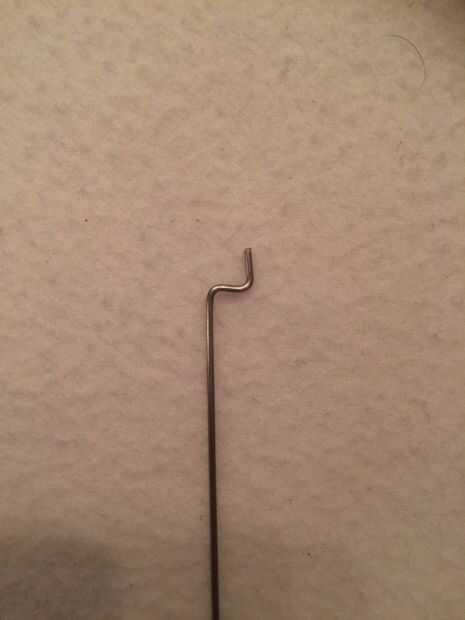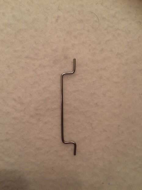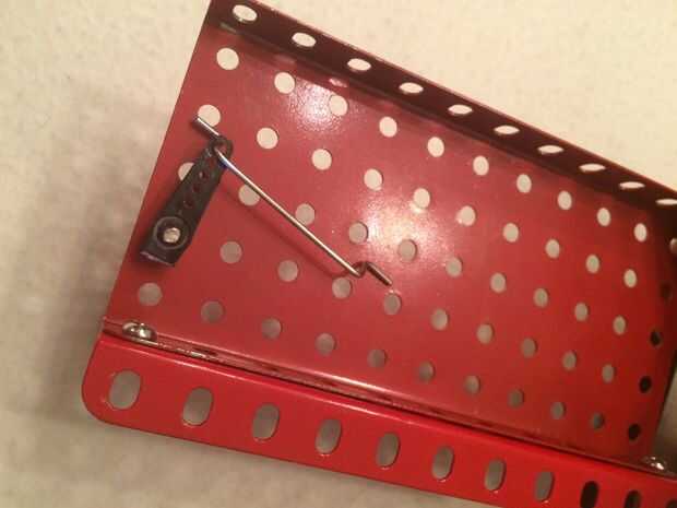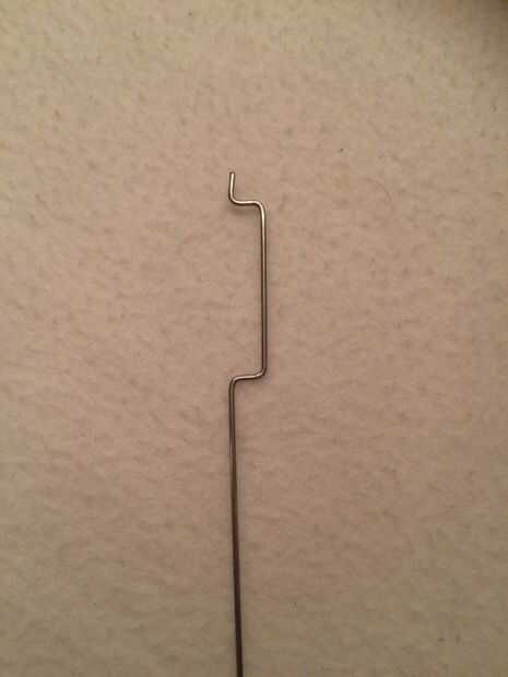 Ahora es el momento de agarrar el alambre de acero y una pinza de la nariz (o algo más para doblar el alambre con) y curva como su hecho en la foto, el cable debe ser de 2, 5cm de largo, con las piezas dobladas están alrededor de 5mm de largo. Por último agregar también el hevel servo como se ve en la imagen final.