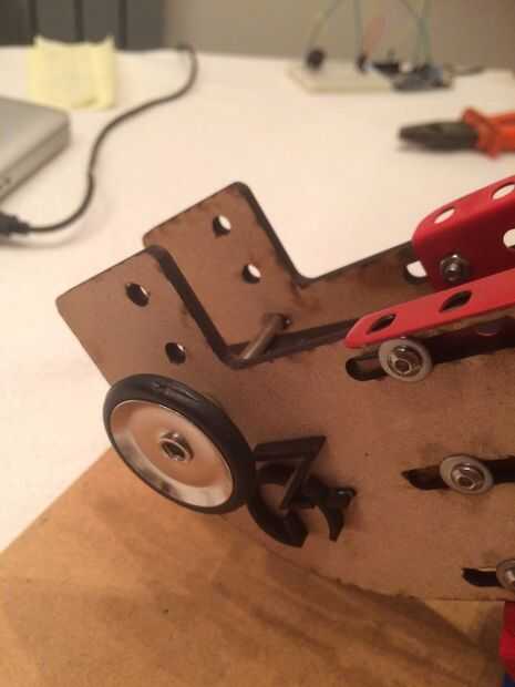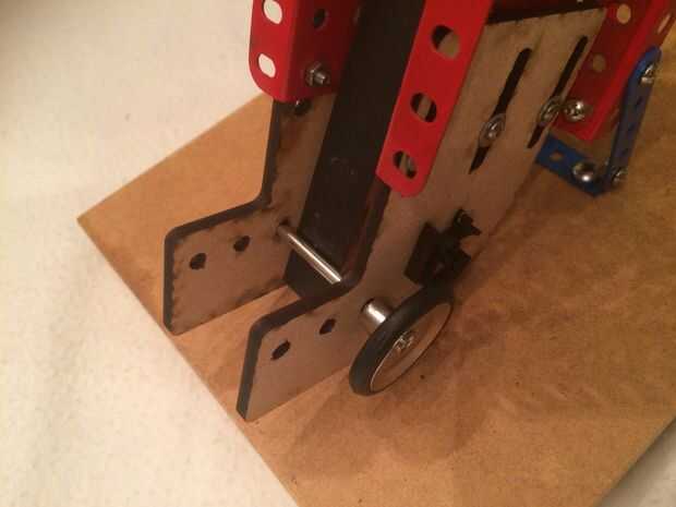 Coge el segundo eje de 40mm y ponerlo en el PY - 2 y poner un perno a través de él (como se ve en la segunda foto). Aunque el PY - 2 es opcional, que puede usar el eje de 40mm sin la PY - 2, puede utilizar los agujeros en la madera de lasercutted para poner el eje de 40mm a través de y poner la pieza de fibra de carbono debajo de él.