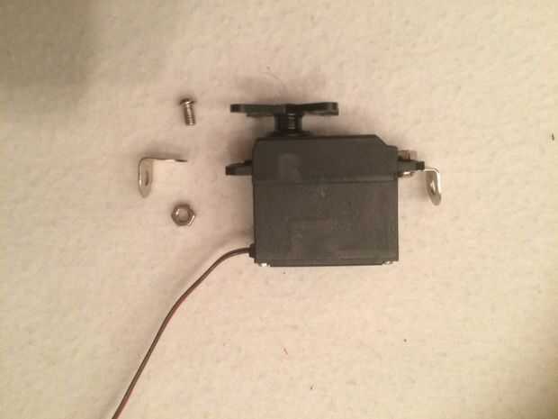 Comenzar agarrando el servo y y el AB-2 a con dos tornillos y dos nuts(6mm). También puede Agregar el hevel servo el servo ahora.