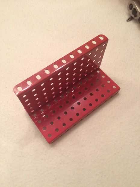 Coge los tres RT-55 (grandes placas rojas). Comience con poner uno horizontal (Asegúrese de que sus "pies" se encuentran en el suelo) y el RT-55 verticalmente sobre él, como en la foto con dos tornillos y dos tuercas.