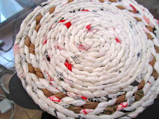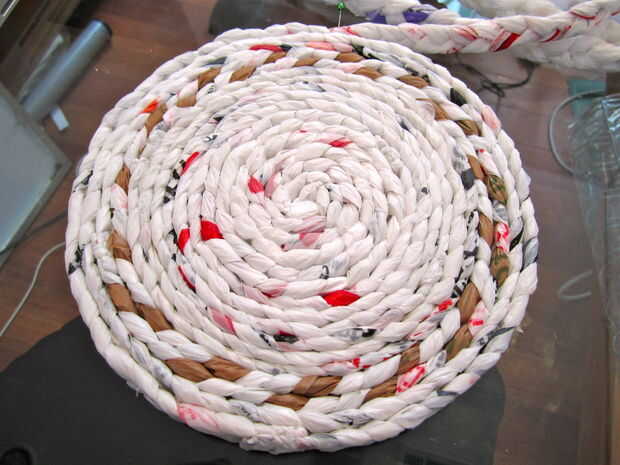 - al llegar al otro lado, asegúrese de que el hilo está tenso y agradable, y que su base es buena y plana y luego anclar el hilo en la ronda exterior y nudo un par de veces.