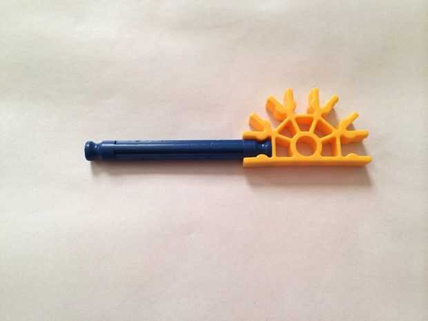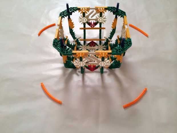 Luego, coloque cuatro barras flexible naranja a los lados de la cesta por flexión a través de los orificios de los conectores amarillo mencionados en el párrafo anterior. Ayuda para doblar las varillas antes de colocar y rotar las varillas en su lugar hacen mucho más fácil que conecta.