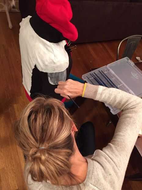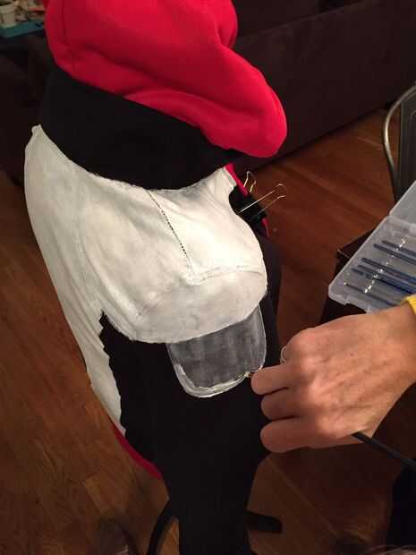 Mi esposa encontró el maniquí a ser muy útil durante el proceso de pintura. Se le permitió ver la chaqueta en tres dimensiones y también le permitió aplicar cada capa de pintura a la chaqueta entera - ahorrando tiempo.