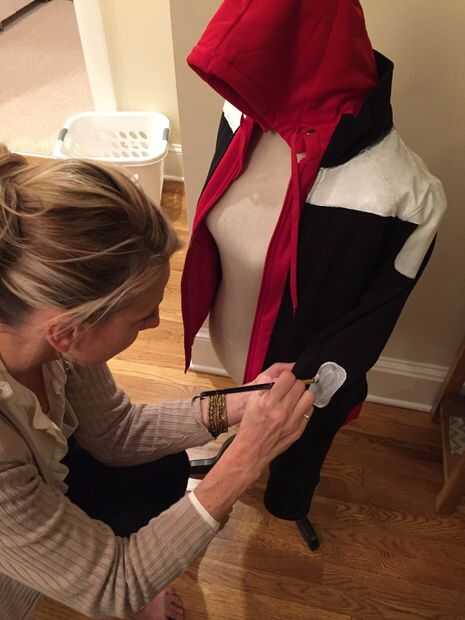 El tercer color principal en la camisa es blanco. Hemos adquirido una sección de brillante tela blanca con la intención de costura a las chaquetas. Mi esposa pronto se dio cuenta que era muy difícil para su máquina de coser penetrar a través de las tres capas de tela. Ella recurrió a plan B, que era pintar el blanco en las chaquetas con pintura de tela. Requiere varias capas, pero al final esto no tome mucho en todo.
