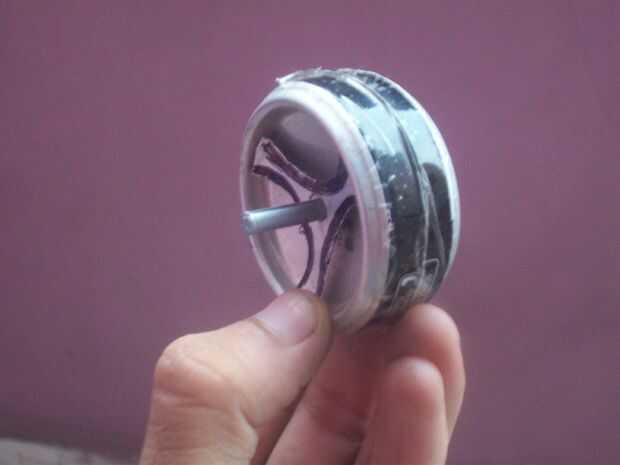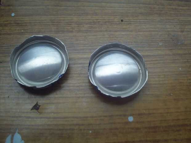 fant la parte inferior de cuatro latas. Corte la parte inferior de las latas. high.tape de 2 cm sobre ellos (ver las imágenes para ayuda)