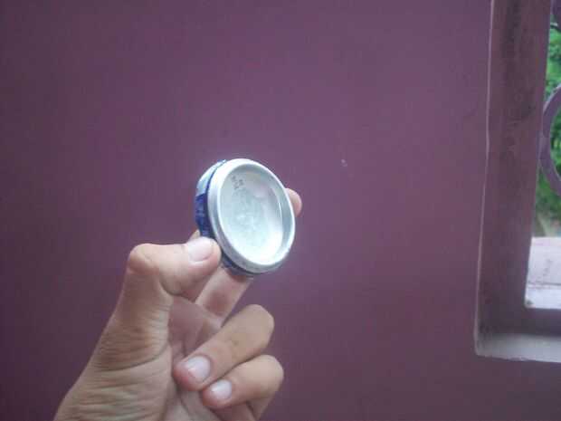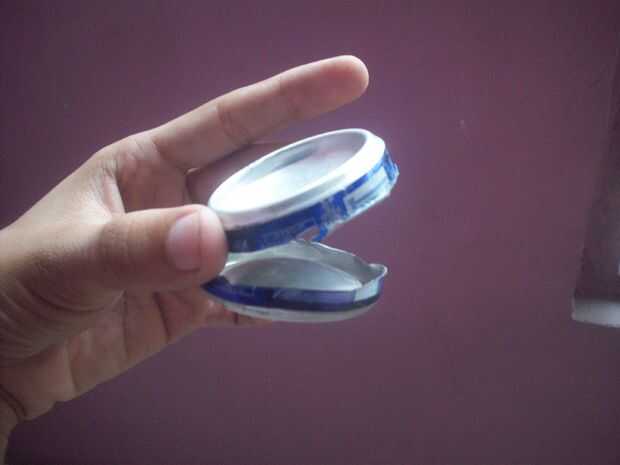 Hacer un agujero en medio de las dos latas (puede utilizar destornillador para hacerlo)