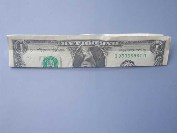 Hot Dog estilo es cuando se dobla un pedazo de papel para que se vea como pan de Hot Dog. Solo doblar el papel es más y mantiene la misma longitud. Doble por lo que la cabeza de Washington se dobla justo por encima de la punta de su nariz. Valle de plegamiento es cuando hacen una V o plegar la parte inferior.