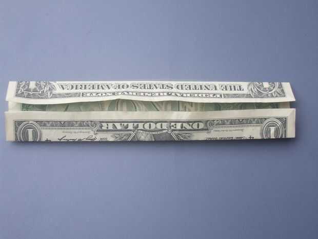 Después del pliegue, pliegue la parte superior e inferior al centro. Para explicar mejor lo que hice, usted debe tener el dólar doblado en cuatro partes si usted desplegado (no revelar, fue solo un ejemplo).