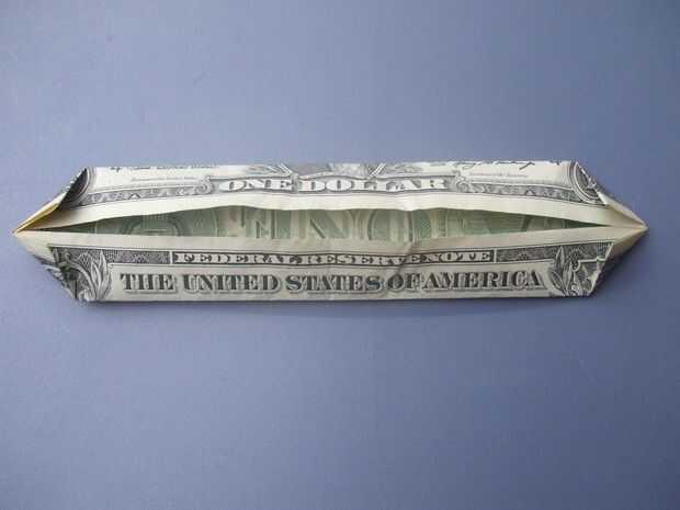 Doblar las cuatro esquinas para el pliegue del centro. El dólar debe ahora han señalado extremos.