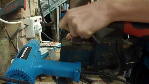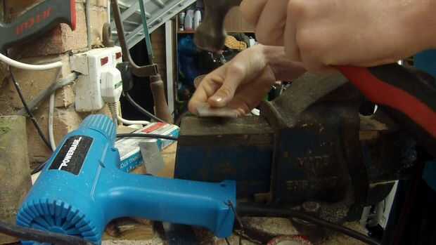 Entonces repetí que procedió ahora tengo dos piezas de aluminio cuando se corta, mina desarrollado un borde rizado, por lo que procedí a aplana con un martillo.