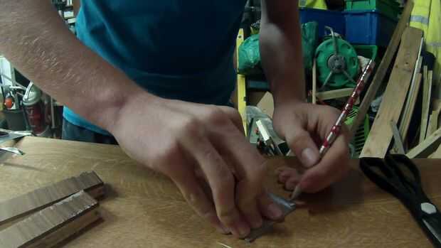 Para hacer una bisagra he utilizado algunos hoja de aluminio que la madera fue trazada en.