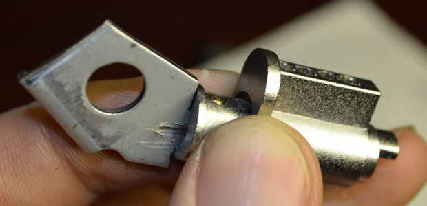 Si la llave no gira suavemente en la cerradura, uno de los cortes no es suficientemente ancha como (el pin se puede descansar parcialmente en el costado de un canal) o hay un problema con la profundidad de uno de los cortes. A veces se puede saber si un corte es lo suficientemente no muy profundas o fuera del centro porque el pasador deja una muesca pequeña en la clave. Busque un punto brillante en las marcas dejadas por el archivo. Si hay uno, tratar de presentar muy ligeramente hacia abajo de eso un punto. Si no existen muescas o marcas de los pernos, que tenga un punto que es demasiado bajo. No es mucho puede que vivir con una cerradura que se pega un poco o trate de hacer otra llave. Si la llave no gira, algo anda muy mal. Desmontar la cerradura otra vez y comprobar su trabajo desde el paso 7.
