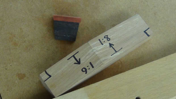 Hacer una auxiliar-cerca de la placa de dispara que da los ángulos de cola de Milano que desee. Para mí, ese fue un final con 1:6 y el otro con 1:8.