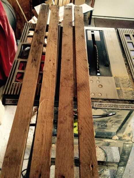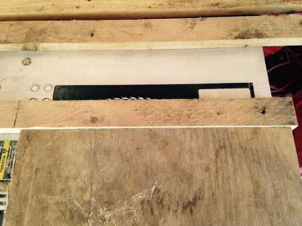 Puede utilizar varios pedazos de 3/4 listones de madera de patines o se puede sustituir una pieza de 3/4" madera contrachapada para la parte superior e inferior (Foto 1). Nota de seguridad - cuando corte con un sistema de Sierra de mesa, altura de la cuchilla hasta que solo corte a través de la madera y no más. (Foto 2) El orden del día 1 º es ripear los patines por la mitad. (Foto 3) Ya que mi resbalón listones de 3/4" 38" de largo que he hecho el marco exterior con 2 piezas, 17 3/8" y 1/2 de 20". 1/8 es devorado por el corte de la sierra. Esto es suficiente madera para fabricar los marcos superior e inferior alrededor de las 2 bases de madera contrachapada.