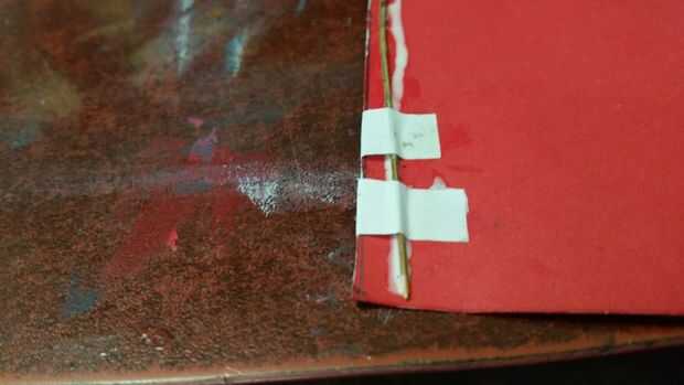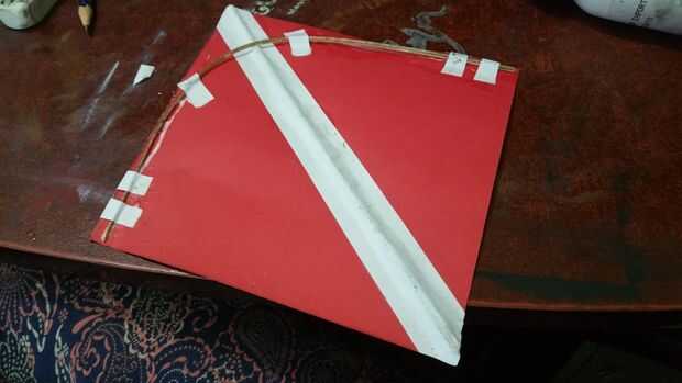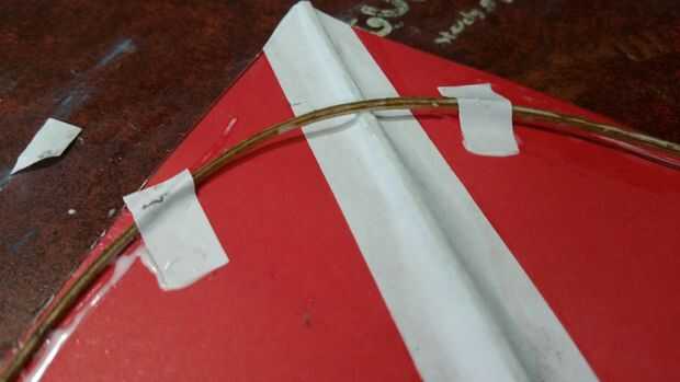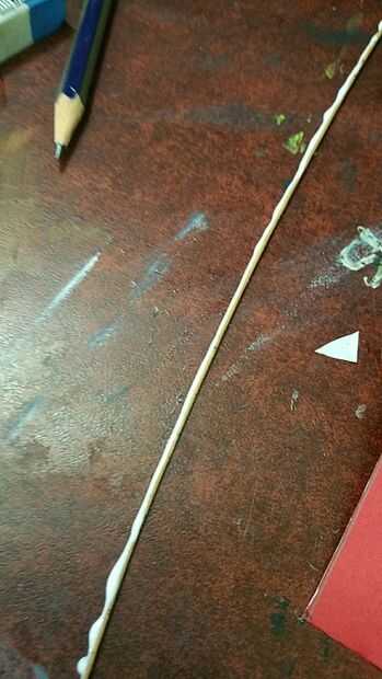 Tome otro boomstick fina y fíjelo en la parte superior de la cometa. Poner pegamento en las paces poco de papel y coloque la cometa
